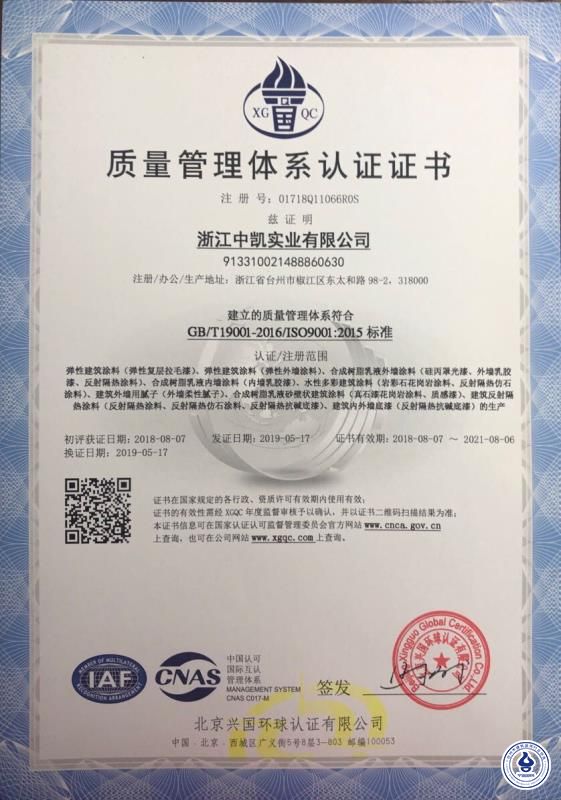 质量管理体系认证证书