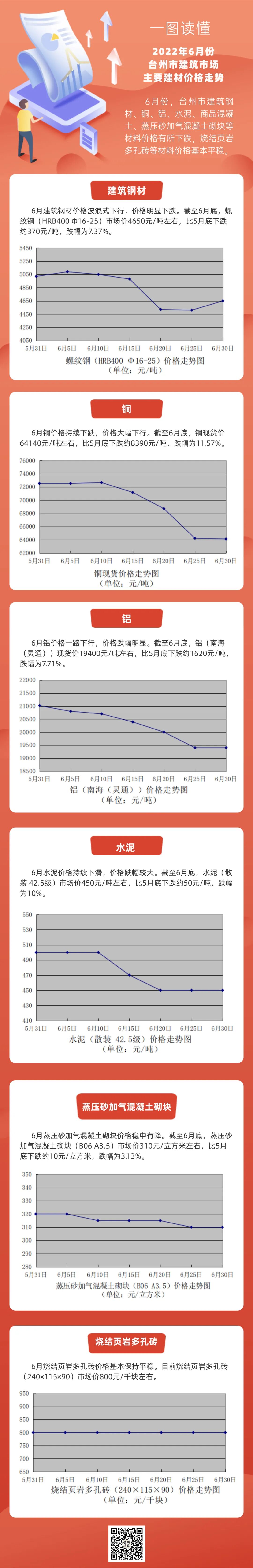 一图读懂∣2022年6月份台州市建筑市场主要建材价格走势