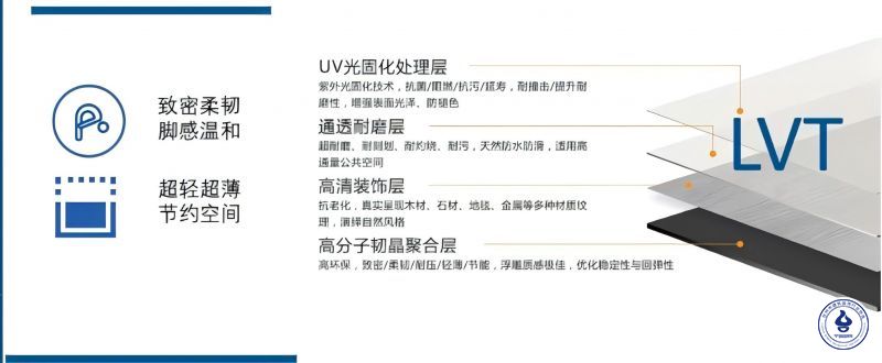 LVT地板,全称为Luxury Vinyl Tile,是PVC地板的一种,属于半硬质片材塑胶弹性地板。其主要成分为聚氯乙烯(PVC),并通过多层复合结构实现多样化性能,通常材料采用环保配方,不含重金属、邻苯二甲酸酯、甲醇等有害物质,符合EN14372、GB4085-83等多项国际及国内标准。面采暖等相关技术,在其上可铺装各种地 面饰面材料,满足不同场景使用需求。